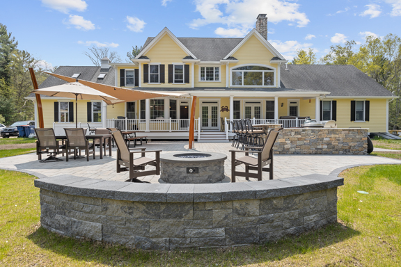 Harmon & Son’s exceptional work in landscaping and property maintenance features stonework, lighting, grass and plantings, in addition to patio, walls, fire pit and more, image by Alexis Marie Photography