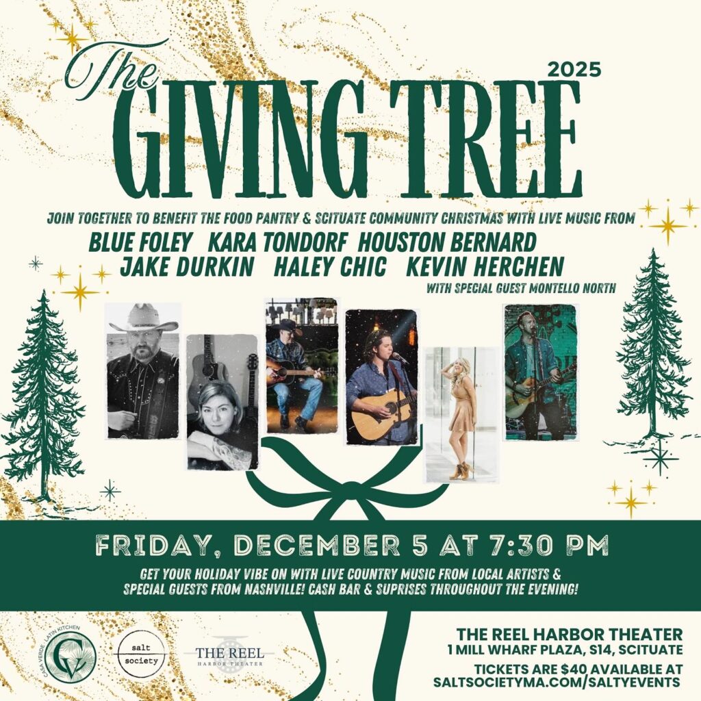 Join Casa Verde, Salt Society and The Reel Harbor Theater in their quest to create a wonderful evening supporting community, full of love, joy and giving, supporting Scituate Food Pantry and Scituate Community Christmas. Enjoy exceptional live holiday, country and original music by local and national celebrity performing artists including Blue Foley, Kara Tondorf, Houston Bernard, Jake Durkin, Haley Chic, Kevin Herchen, with special guest Montello North. Special guests and other surprises highlight this special event.