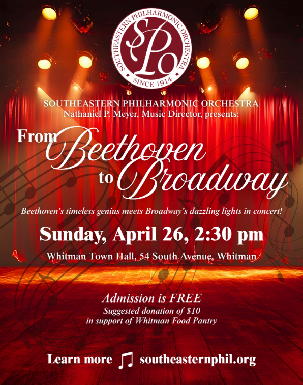 The Southeastern Philharmonic Orchestra (SPO) presents its spring concert series, “From Beethoven to Broadway,” a program bridging classical masterworks to beloved musical theater favorites. The program includes Beethoven’s “Coriolan Overture,” “Korngold’s Suite from The Sea Hawk,” “Sibelius’s Finlandia,” and selections from “West Side Story,” “The Phantom of the Opera,” and “The Sound of Music.”