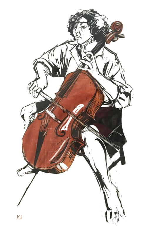 Enjoy large woodblock prints in a solo exhibition by Artist Madeleine Lord in the Concert Hall, inspired by instruments and the musicians that play them. Madeleine Lord is a multidisciplinary artist whose oeuvre includes drawing, painting, woodcut prints, monoprints, photography, and animation as well as metal sculpture.