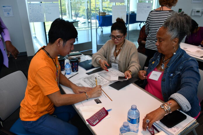 Educators participate in a hands-on genealogy activity during the “Genealogy in the Classroom” workshop on St. Croix, where teachers explored ways to incorporate family history into their lessons.